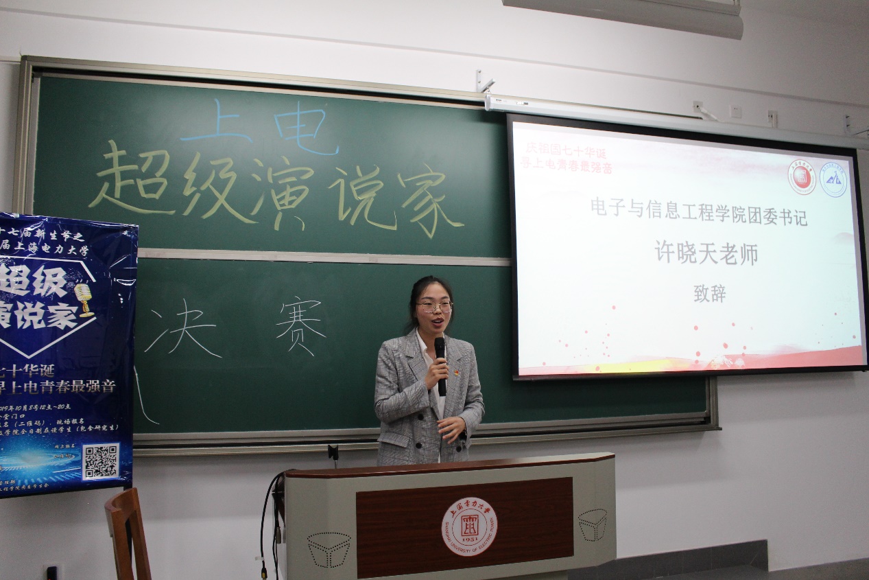 演讲环节结束后,电信公司团委书记许晓天老师对超级演说家活动进行了总结,充分肯定了各位选手的精彩表现,每一位选手从激烈竞争的初赛、复赛走到今天都付出了辛勤的努力,是值得被肯定的;同时也表达了对选手、评委、观众以及活动组织方的感谢,是大家的共同努力才使本届超演如此精彩。