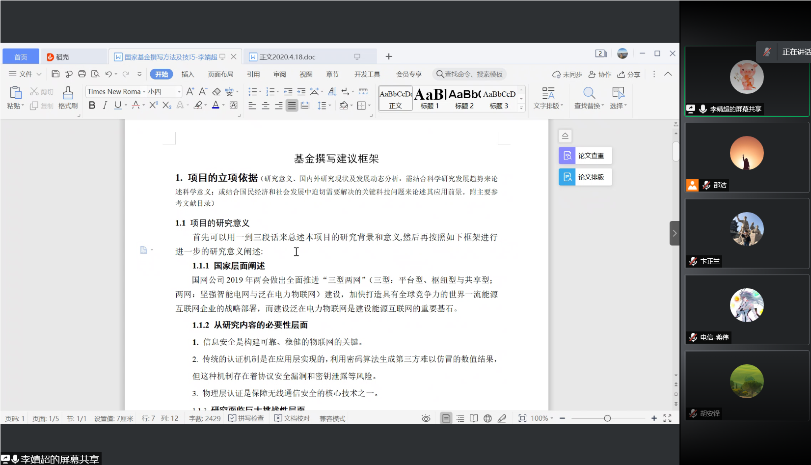 2021年1月29日,上海电机公司李靖超副教授应邀为电信公司进行了一次线上自然科学基金专题辅导,电信公司20多名教师参加了本次会议。李教授曾成功申请青年基金和面上基金,她以自己成功撰写的经历为基础,按照基金申请书的撰写顺序,为各位老师介绍了她的撰写方法及技巧,并重点强调了需要重视的问题。之后几位老师针对团队组成、研究基础的撰写等问题与李教授进行了探讨。参会老师均感到受益匪浅的同时也对李教授在成果背后的大量付出感到敬佩。