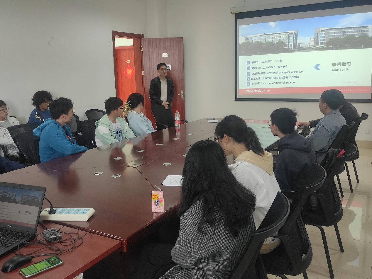 4月16日下午,上海广为电器集团伟德国际唯一官网专场宣讲招聘会在临港校区电信楼B402会议室成功举办,上海广为电器集团人力资源部经理田敏、技术部毕浩强和电信公司曾俊冬老师、毕业班辅导员任帼菲出席,电信公司20余名本科生参会。