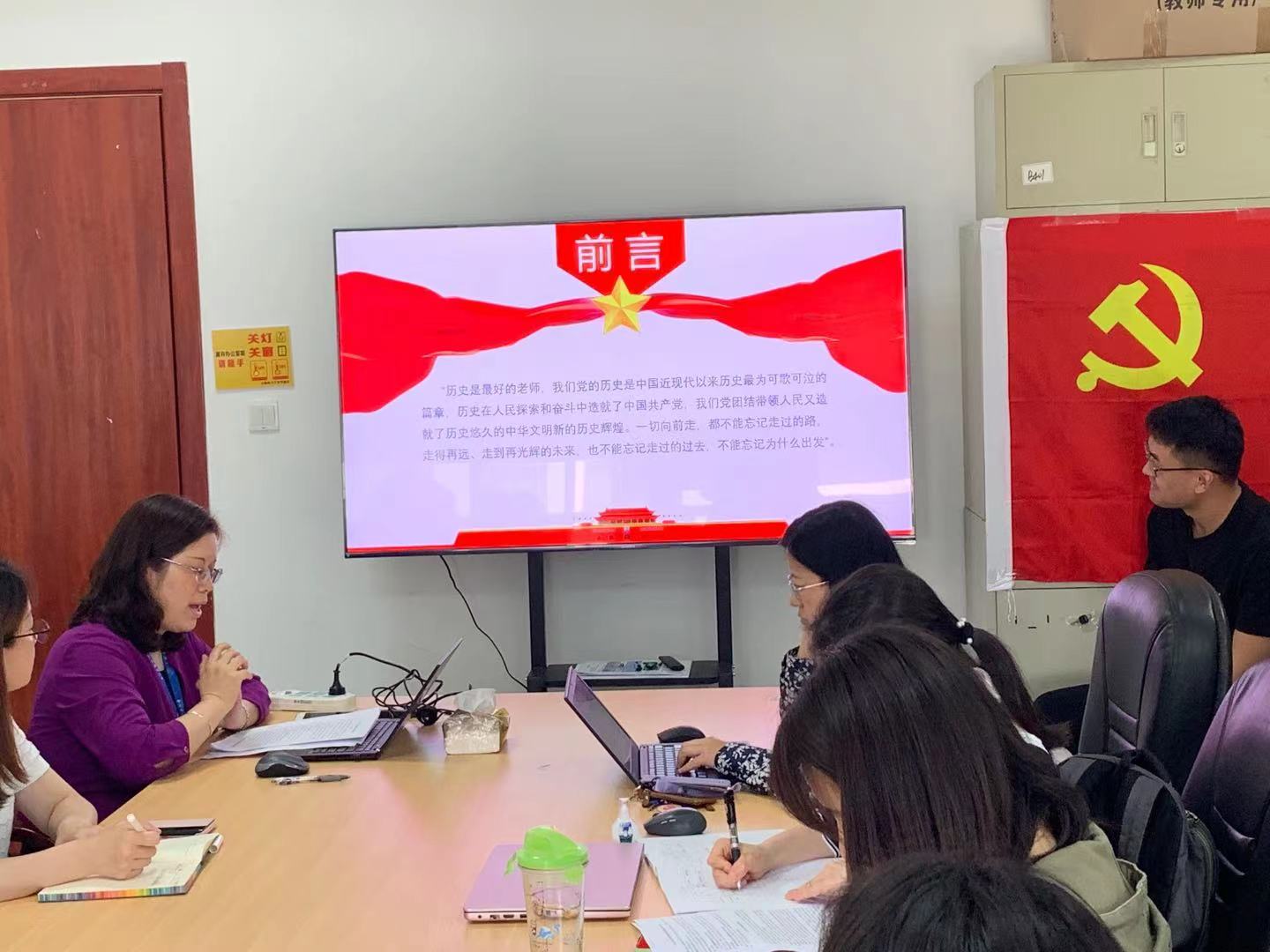 何西培首先为党员们介绍了开展党史学习教育的重大意义以及开展党史学习教育的重点,强调党员师生要从党史中汲取正反两方面历史经验,自觉在思想上、政治上、行动上同以习近平同志为核心的党中央保持高度一致。她从学史力行,赓续共产党人的精神血脉的学习角度谈体会,谈到马克思主义中国化的理论成果指引方向,谈到“实事求是”是党开展一切工作的基本要求,为人民服务是我们共产党人不变的初心,在继承和发扬中构建共产党人精神世界的四个方面进行了深入浅出的讲解。何西培强调,当前我国发展面临着前所未有的风险挑战,所以我们必须从历史中获得启迪,从历史经验中提炼出克敌制胜的法宝。