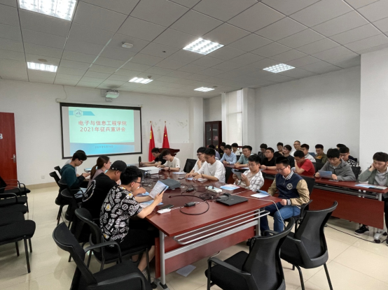 为提高电信公司研究生应征入伍的积极性,增进研究生对征兵政策的了解,5月19日电信公司在公司会议室举行2021年征兵宣讲会,公司党委副书记周冬梅、研究生辅导员阮文杰,公司2019级和2020级符合入伍年龄要求的研究生参会。