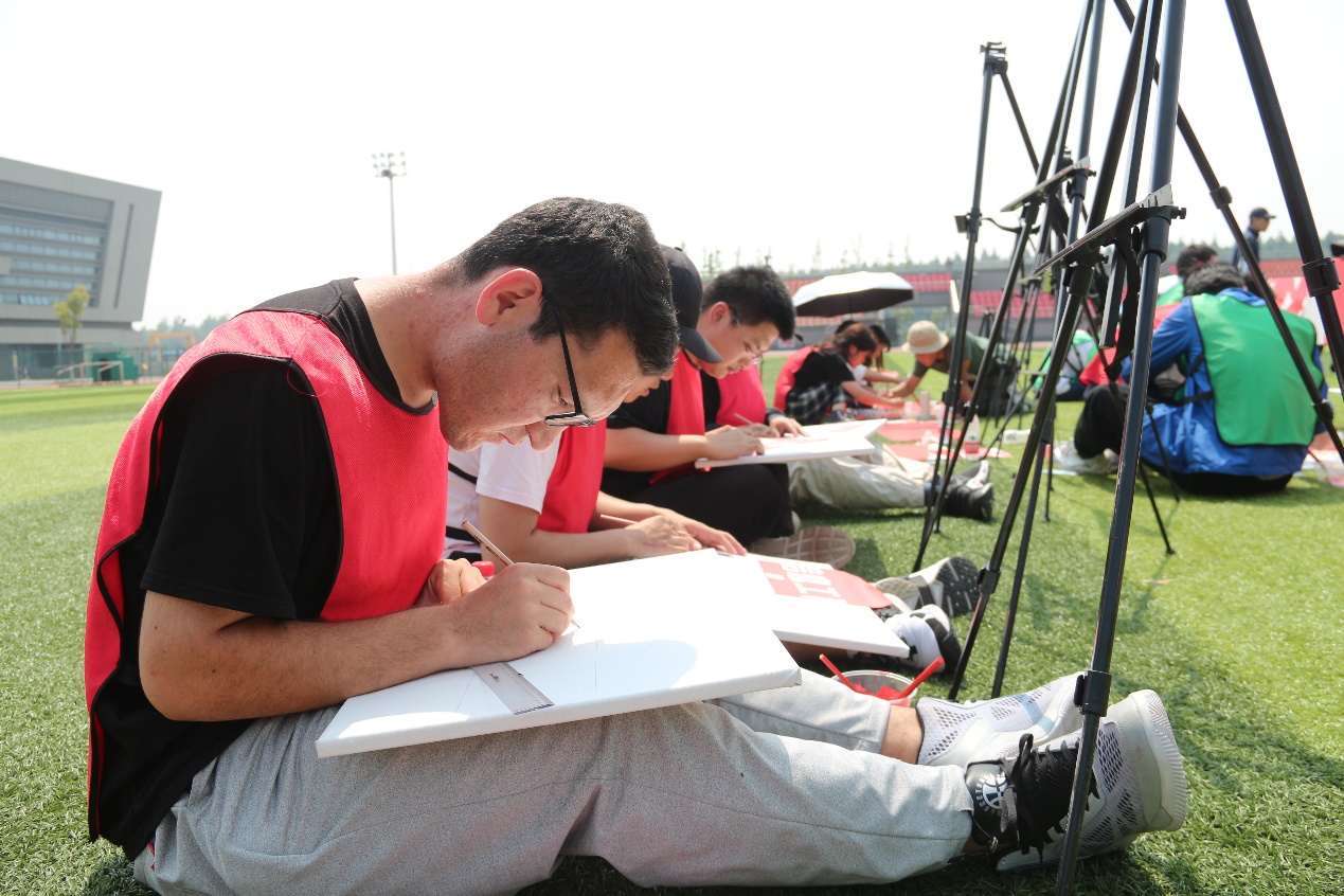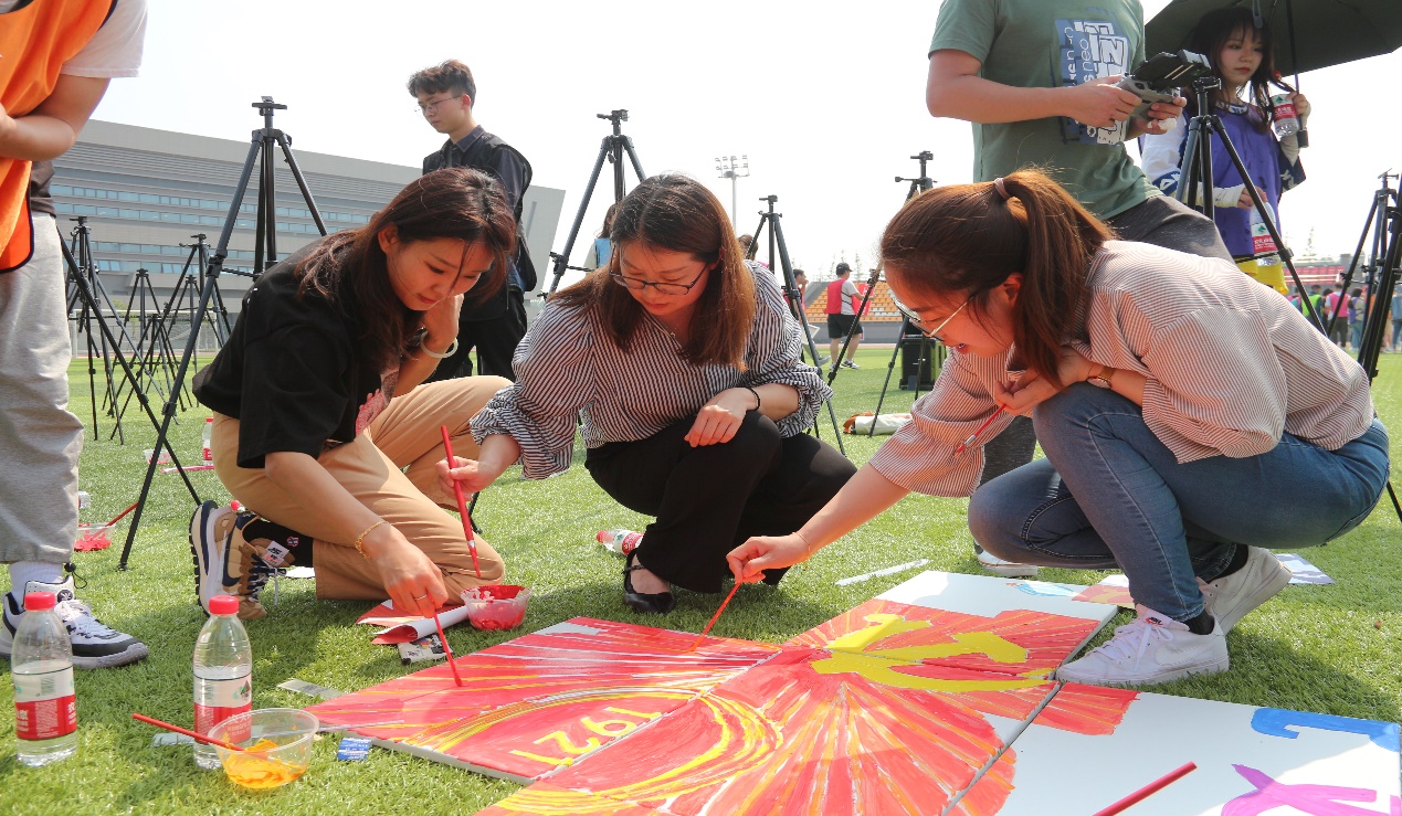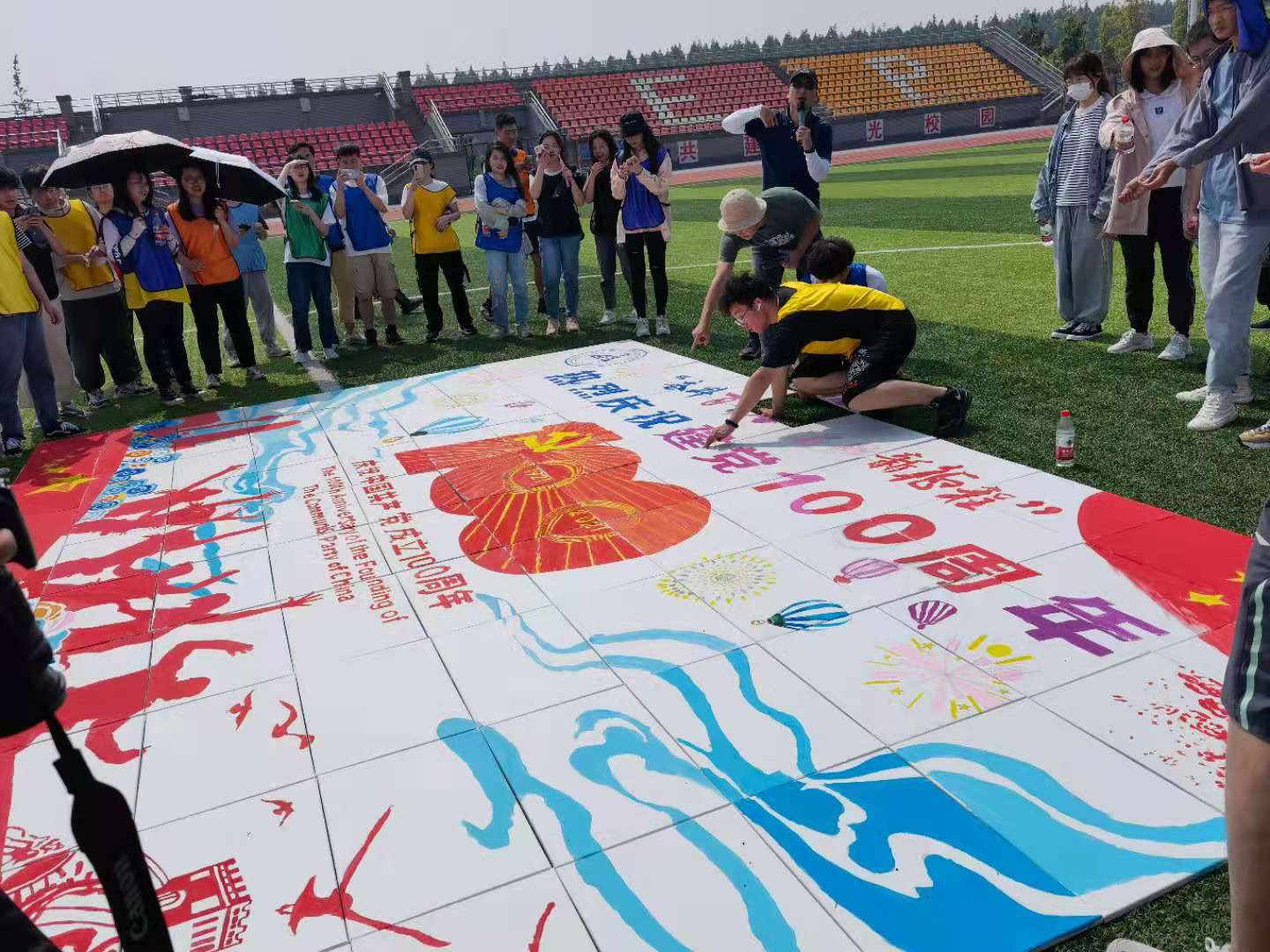 活动开始后,师生被分成十组,共同完成由100块画布组成的巨幅油画。每位成员领到了自己需要完成的部分,开始绘制时除了要考虑自己所要完成部分的排版布局,更要考虑自己画的位置、颜色、造型能否与自己前后左右同学的画完美的衔接起来。整个过程中,同学们需要积极的进行交流沟通,互帮互助,通力协作,将电信学子对党的祝福用心的一笔一划的描绘出来。