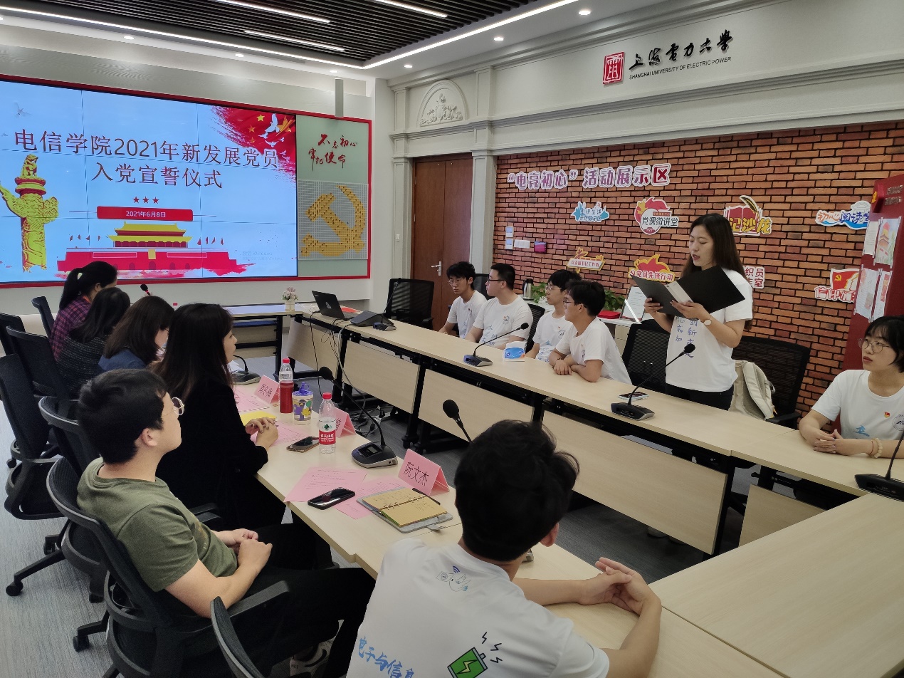 为从严从实抓好党员教育管理,提高党员队伍建设质量,激励新党员坚定信念、胸怀祖国,担当有为。6月8日电信公司在学术楼党建服务中心102室举行新发展党员入党宣誓仪式。公司党委副书记周冬梅、组织员沈龙云、员工党支部书记阮文杰、王思绮、黄燕以及2021年上半年新发展党员出席了此次活动。会议由沈龙云主持。