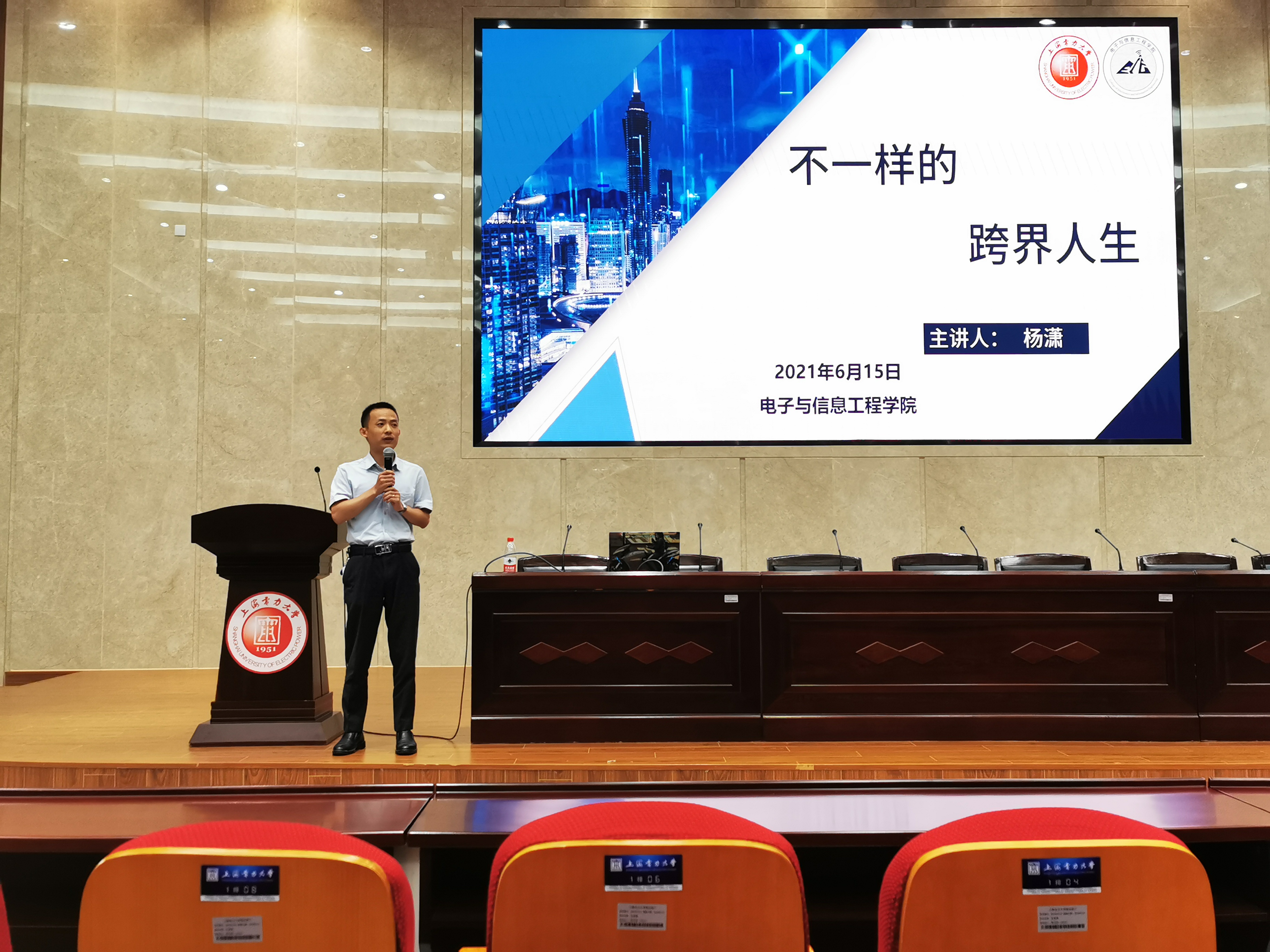 杨潇是电信公司2001级电子信息工程专业学长,讲座中他通过自己本硕博学习阶段不同专业的选择、考取的各类资质证书、教授的不同类别课程、从事的各项工作等几个方面,讲述了自己丰富多彩的跨界经历,结合跨界过程中的趣事和感悟,分享了跨界带给自己的收获:提高了学习知识的能力,开阔看待问题的思路,拓宽了交际圈,增强了自信心以及可供选择的道路等等。