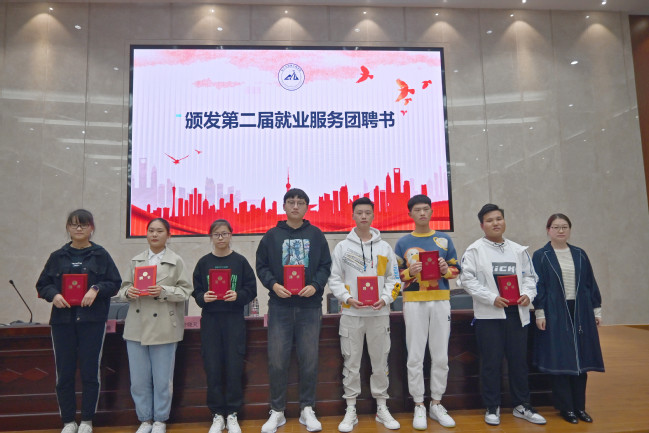 随后周冬梅和赵琰共同为公司第二届就业服务团的成员颁发了上岗聘书,电信公司就业服务团自2020年正式成立以来,在就业市场拓展、就业信息搜集、求职技能辅导、宣讲招聘会的筹备与组织等方面都发挥了积极的作用,在助力毕业生高质量就业的同时,就业服务团成员自身的就业竞争力也得到了锻炼和提升。