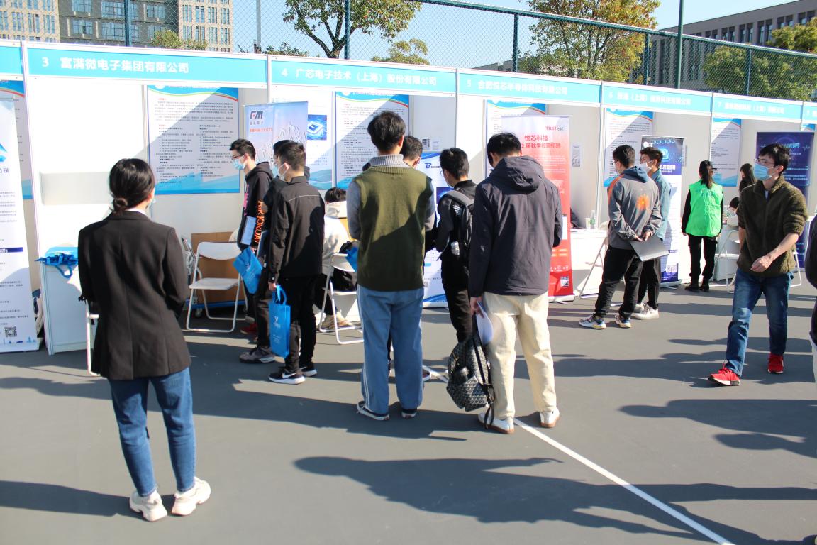 11月12日下午,电信公司2022届毕业生秋季专场招聘会在临港校区篮球场举办,本次招聘会共邀请到中芯国际集成电路制造有限公司、上海邮电设计咨询研究院、上海积塔半导体有限公司、富满微电子集团有限公司、康希通信科技有限公司等25家企业,提供电子信息领域的200多个工作岗位,此次招聘会共吸引100余名毕业生参加。
