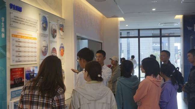 10月29日,电信公司组织全体新生参观临港校区校史馆,电信公司党委副书记周冬梅,2021级新生辅导员刘姝与新生一同参观。