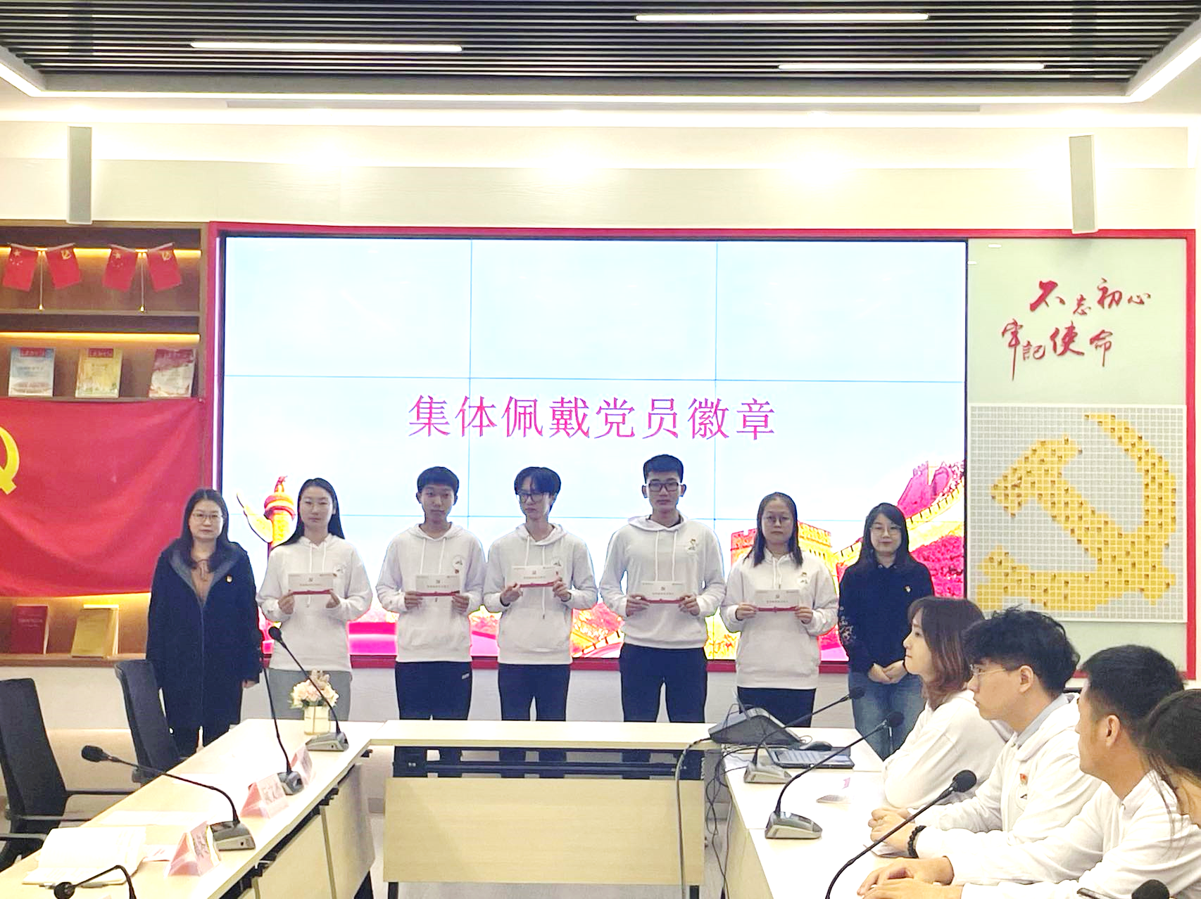 周冬梅宣读了《中共bevictor伟德国际委员会关于批准接收贾明潇等13位同志为中共预备党员的通知》,随后与各党支部书记共同为新发展党员佩戴党员徽章,发放党员生日贺卡,与新党员们共享成长的喜悦。