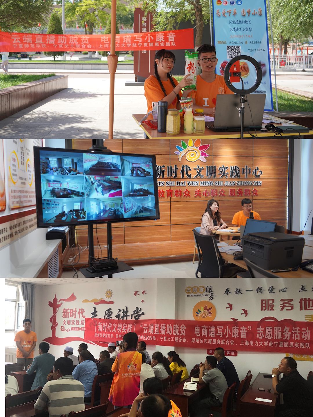 2020年,为进一步解决因疫情影响的产品滞销和产品宣传覆盖面不足的问题,实践队在固原市原州区委宣传部、文明办、民政局、团区委、志愿服务联合会、新时代文明实践中心以及宁夏师范公司团委、宁夏义工联合会的大力支持下,因地制宜、发挥优势,由队员化身主播进行直播带货。4场直播带货为当地老乡推广了土蜂蜜、红军粉、枸杞等土特产以及精美的残疾人手工艺品,在直播的同时通过云视讯平台,对原州区167个乡镇、街道和村部的老乡进行培训,累计超过19000人在线观看,完成交易127单,共计交易额近10000元,产品远销上海、江苏、安徽、河南、广东、山东、吉林、辽宁、内蒙古等地,实践队被学习强国平台、青年报、宁夏日报、固原电视台、固原日报、固原新闻等媒体多次报道。
