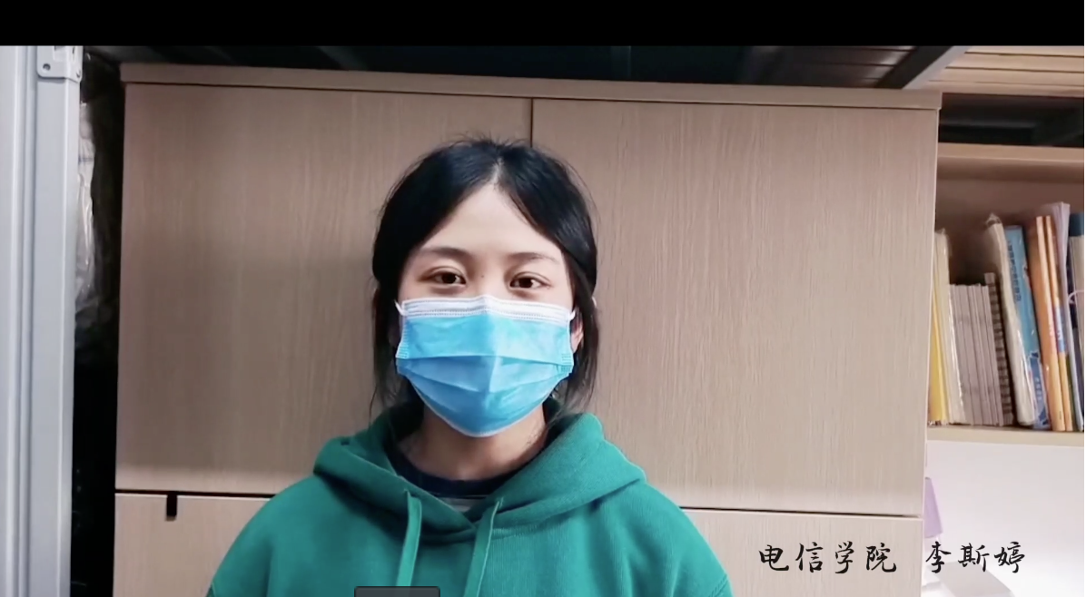 2019级电子信息工程专业刘一鸣说:“科学防疫,我们一马当先。在疫情防控班会的学习中,我感受到了新冠奥密克戎病毒的来势汹汹,也更震撼于援沪医疗队及防疫志愿者在疫情战场上逆行的勇气和伟大的奉献精神。我认为作为新时代的老员工,积极响应落实公司的各项防疫工作,是对疫情防控最基本的贡献也是最大的贡献。在日常注意防疫的同时也要积极投身于志愿者的队伍中,为同学为公司做真正有意义的服务。疫情当前,我们携手守!”