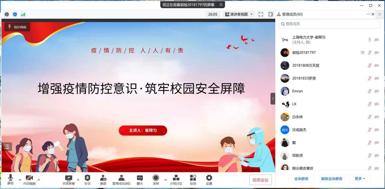 疫情当前,电信公司坚持奋斗在疫情防控攻坚战的最前沿,创新工作方式方法,加强宣传引导,立足各年级员工特点及工作重点,通过线上主题班会向员工系统传达了公司疫情防控的工作部署和要求,宣讲了疫情防控措施与知识,引导员工增强防护意识。主动担当到位加强对员工的心理关怀,引导员工用积极的心态面对疫情,解读了高校从严管理的必要性,使同学们发自内心地理解公司和公司的各项管理要求。精准摸排到位,做战“疫”路上的护航者,通过实际案例警示同学们严格遵守各项疫情防控规定,做到安全健康和学习成才两不误,用实际行动成为员工思政教育的“活教材”。