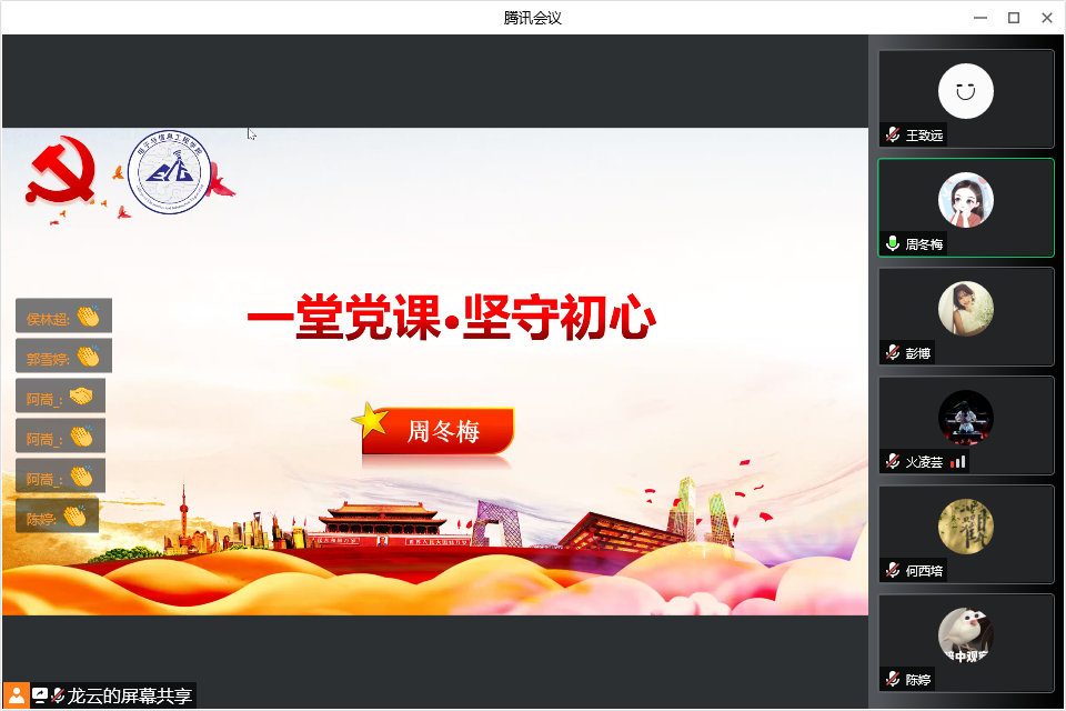 一份祝福·寄语母校。毕业生党员代表陈婷、杨志鹏、潘威宇、王致远、彭博、火凌芸等围绕“党支部工作、疫情防控、社会实践、就业经验”等方面分享了自己的感悟和体会,感恩母校的教育和培养。他们代表全体毕业生党员表示将始终牢记党员身份,保持“站在前、走在前、干在前”的先锋姿态,不负公司和老师的嘱托,努力奋斗,争创佳绩,肩负起新时代青年的使命与担当。低年级党员也通过视频寄语的形式,为学长学姐们送上深情祝福。