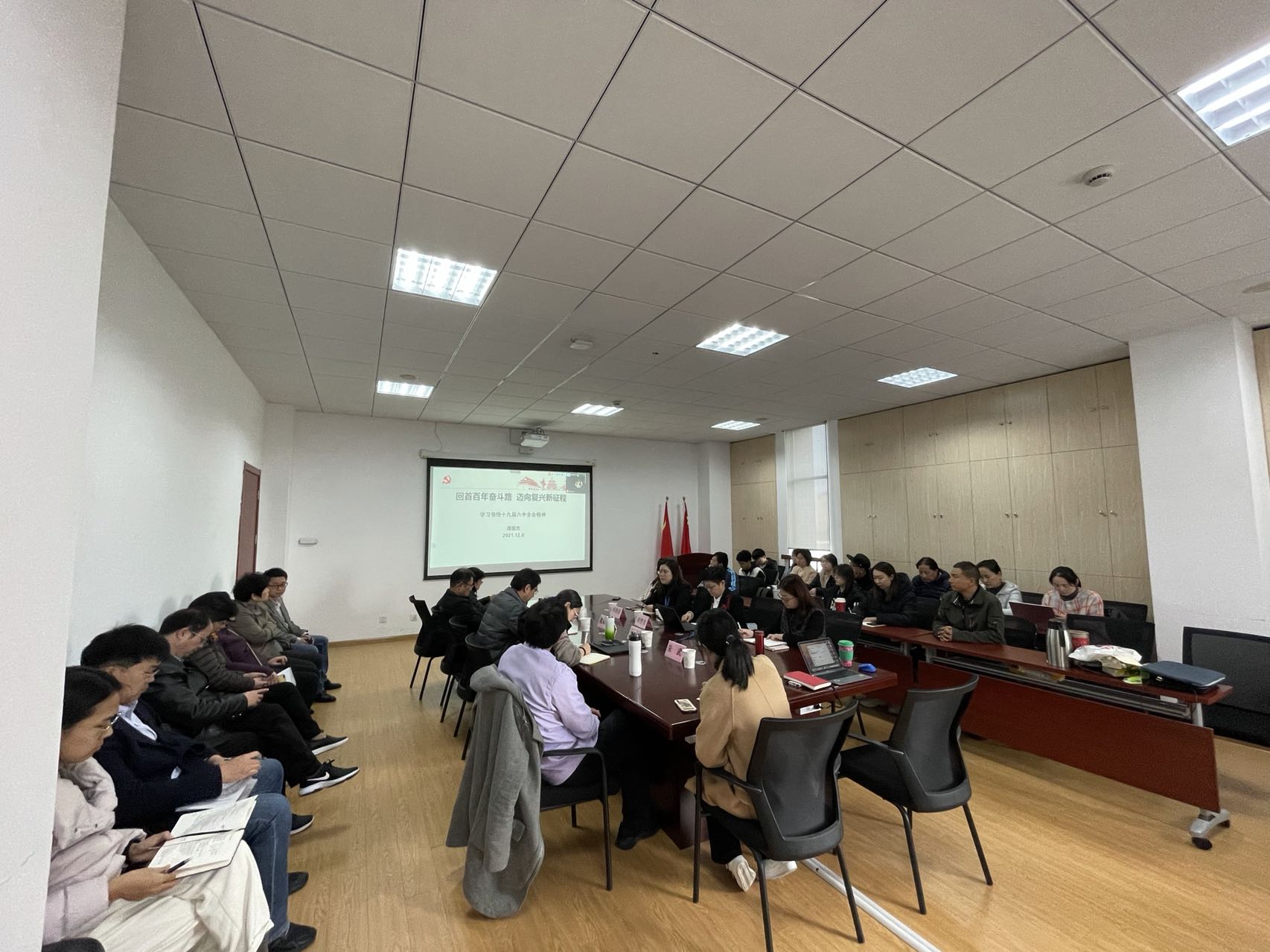 报告后,中心组成员对学习感受进行交流分享。大家都认为此次二级中心组学习的举行,恰逢党的十九届六中全会召开后的一个月,作为高校师生,要在日常的教学、科研、学习中,积极践行党的十九届六中全会精神,把立德树人作为根本任务,把服务国家作为最高追求,把团队建设作为发展根据,把发展党的建设作为根本保障。