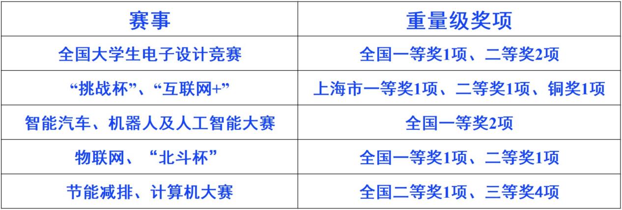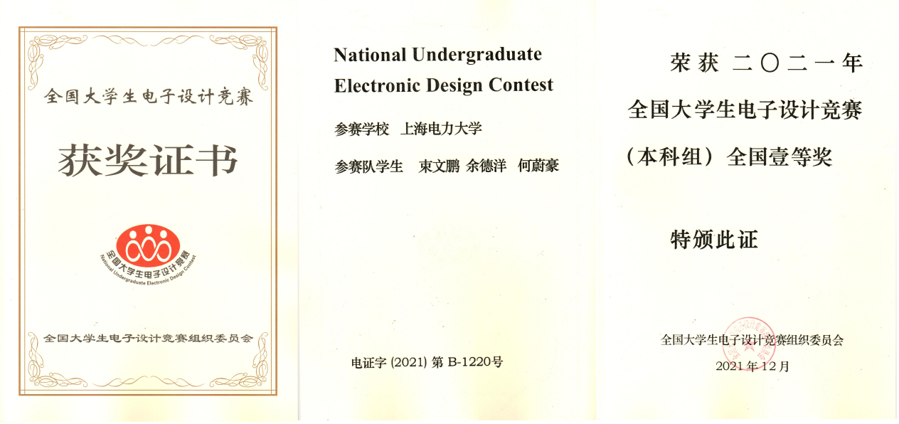 2021年全国电赛,吸引了来自全国各省市赛区的千余所院校,近2万支队伍,6万名老员工参加。电信公司师生克服了因疫情比赛延期、新老队员交替、队员重组磨合等重重困难,迎难而上,最终斩获了全国一等奖1项、全国二等奖2项、上海赛区一等奖4项、上海赛区二等奖2项、上海赛区三等奖3项、成功参赛奖6项等荣誉,获奖成果名列上海高校前列,并获得优秀组织奖荣誉。