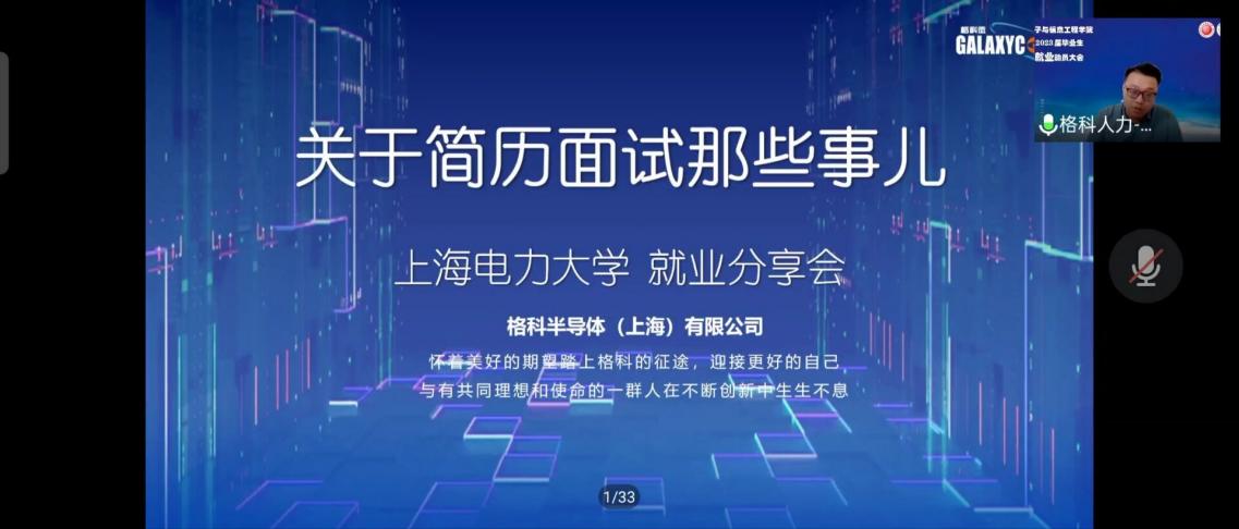 为扎实推进2023届毕业生就业指导工作,让毕业生明晰当前就业形势,把握就业机会,9月22日,bevictor伟德国际通过腾讯会议的形式召开2023届毕业生就业动员大会,引导同学们进一步明确就业思路与方向,做好求职准备与行动。电信公司党委副书记周冬梅,副经理赵琰,2021届就职于中国电信上海分公司的员工周宇涛、就职于上海集成电路研发中心的员工朱家申,毕业班辅导员和全体2023届毕业生参加会议。格科微电子(上海)有限公司人力资源陈俊受邀开展讲座。