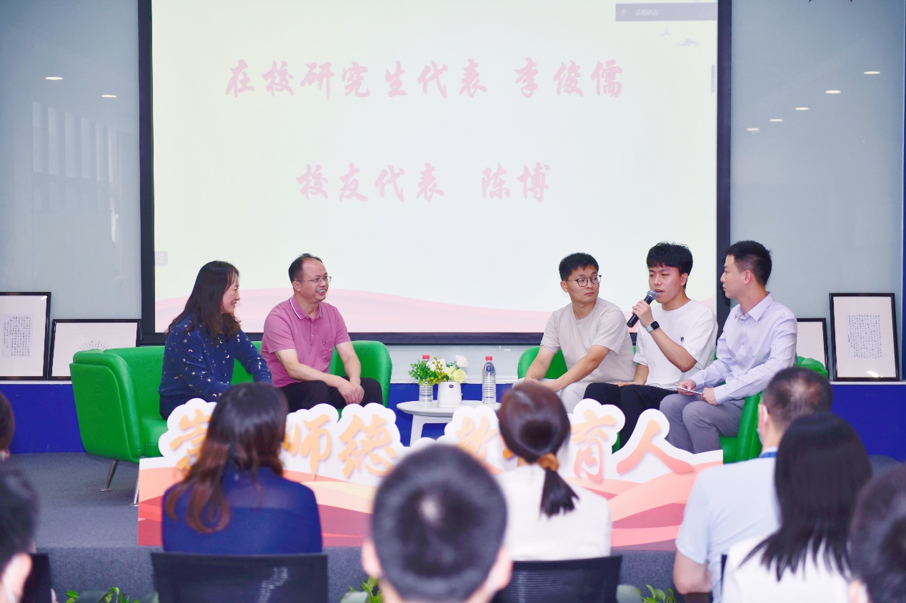 江友华老师亲临现场讲述了自己的求学经历、教学工作、科学研究,志愿服务等感人故事,讲述了自身与癌症抗争的十年过程中,如何坚守教书育人的初心和使命。现场教师代表、员工代表、员工代表从不同角度分享了与江友华老师相处的感人瞬间。与会师生纷纷感慨,通过聆听本次师德讲堂,切实感受到了江友华老师无私奉献、甘为人梯的精神品格,他的坚韧、执着与博爱,印证了平凡中的非凡,普通中的崇高,为我们树立了身边可亲可敬的榜样,激励我们每一个人都努力活出自己生命的价值。