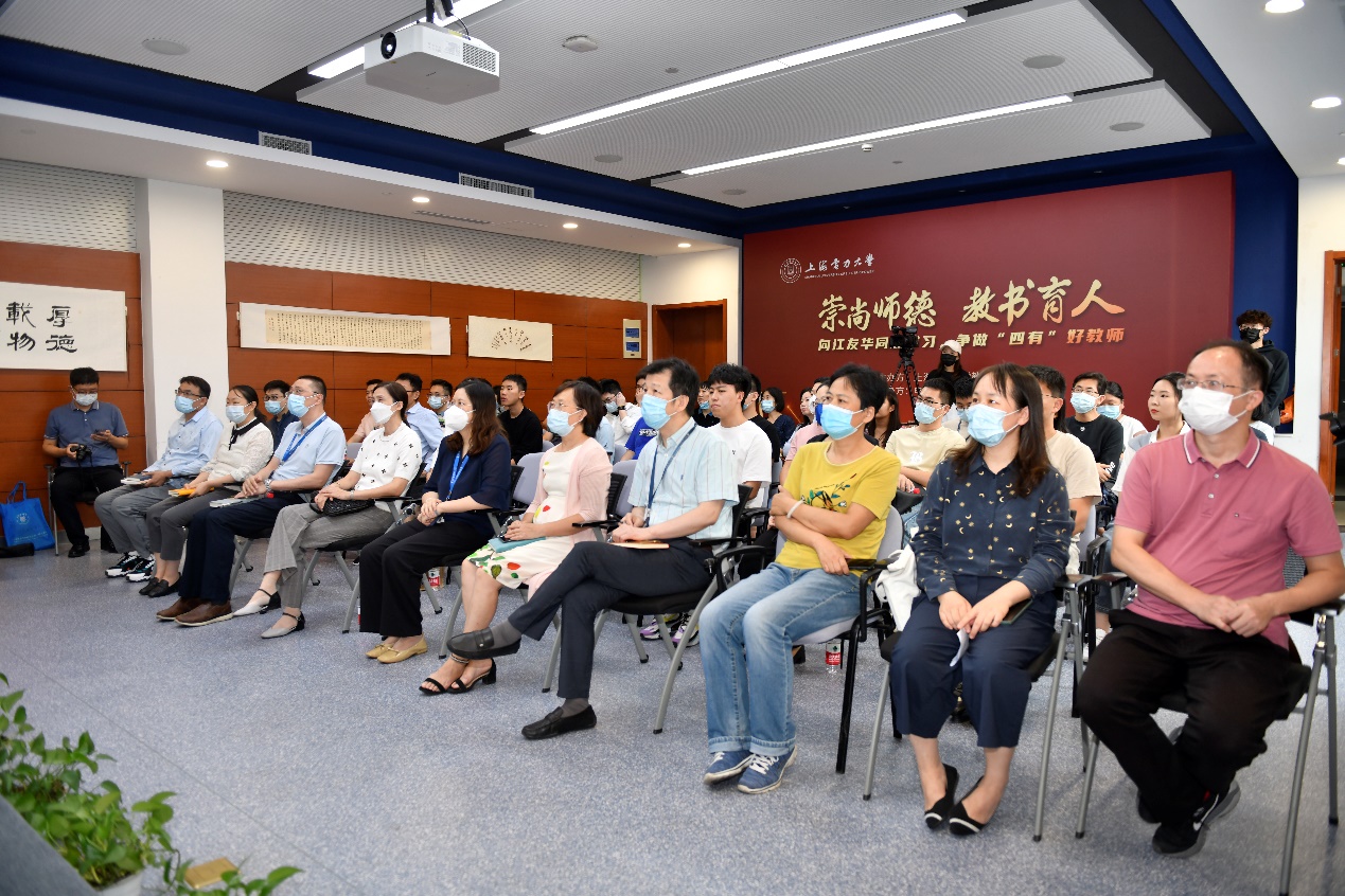 新进教师李骁谈到,伟大出自平凡,平凡造就伟大。作为一名新人,非常荣幸能够在入职不久,就有这么优秀的前辈让我学习和敬仰。我想,作为一名人民教师,作为育人的楷模,江友华老师勇于创新的工作作风、为人师表的职业道德、谦虚和善的同事关系值得我们每一个人学习并且让我们每一个人都能活出自己生命的价值。在未来,我也希望自己能够提灯引路,育梦成光,成为一盏点亮前方的明灯,为员工照亮前路,指明方向。