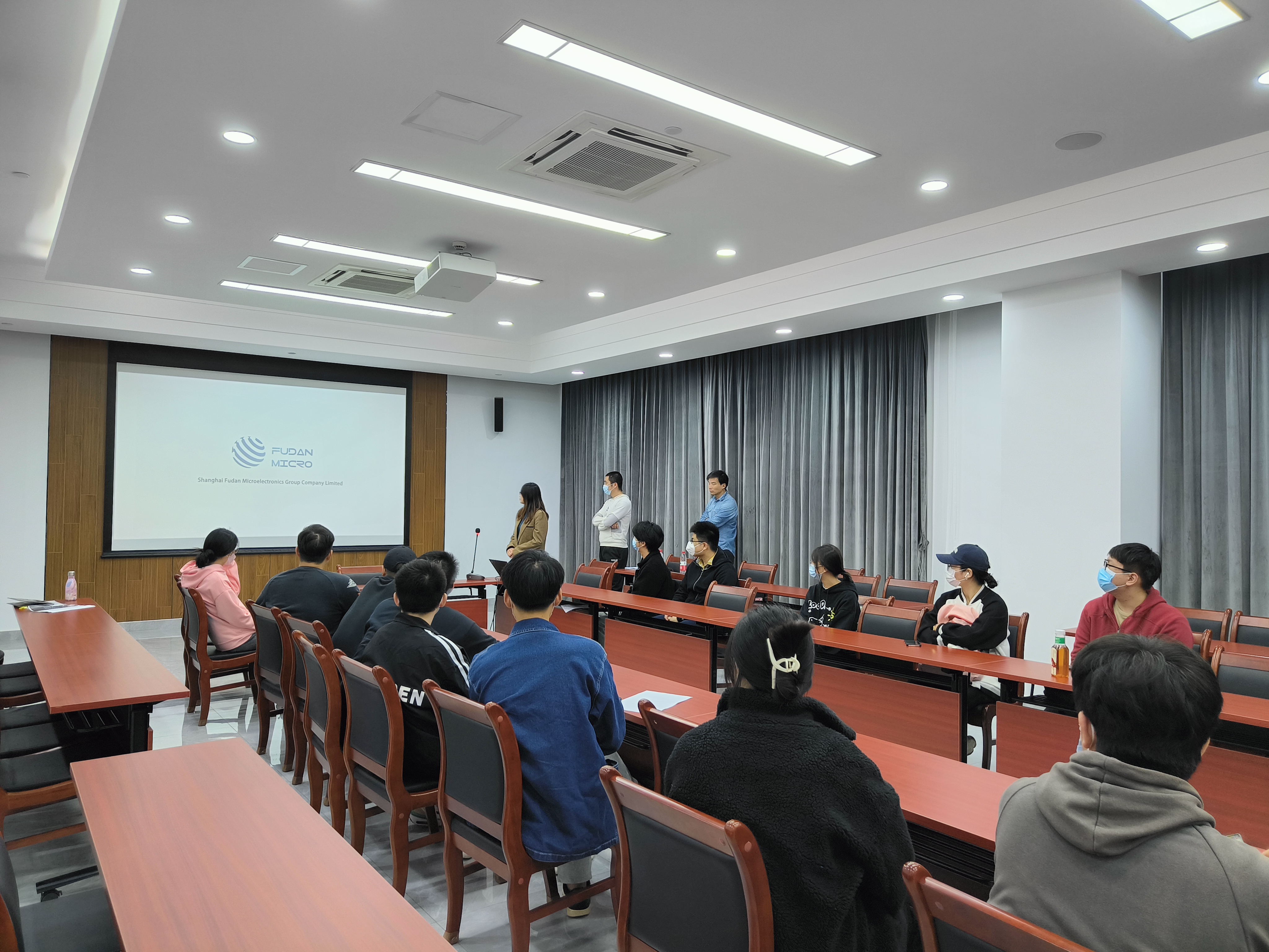 11月22日下午,上海复旦微电子集团股份有限公司(以下简称“复旦微电子”)2023届校园招聘宣讲会在公司临港校区学术楼305会议室举办,复旦微电子人力资源部吕沁沁,工程师袁翔,就职于复旦微电子的电信公司2021届毕业生刘琦,电信公司党委副书记周冬梅,毕业班辅导员王思绮出席会议,宣讲会采用线上线下相结合的方式展开,公司近80余名毕业生参加。