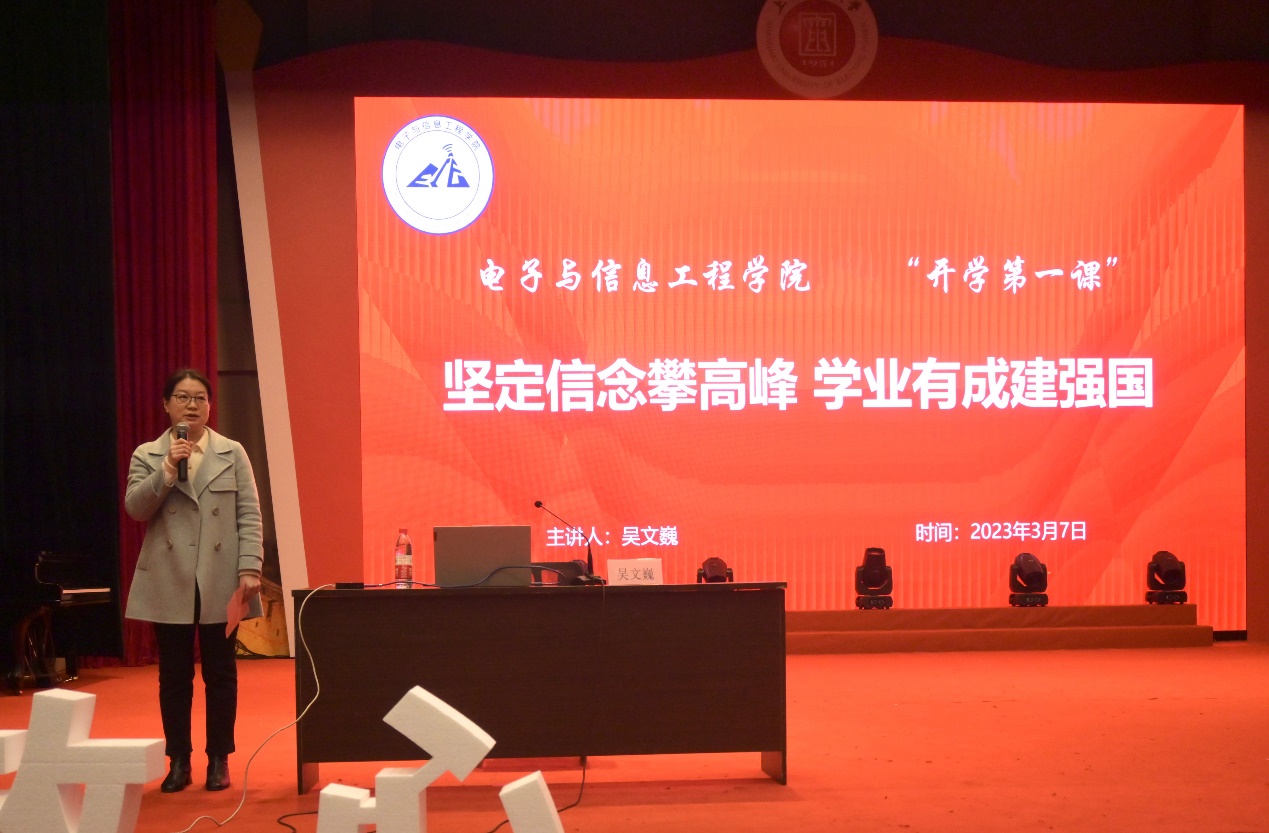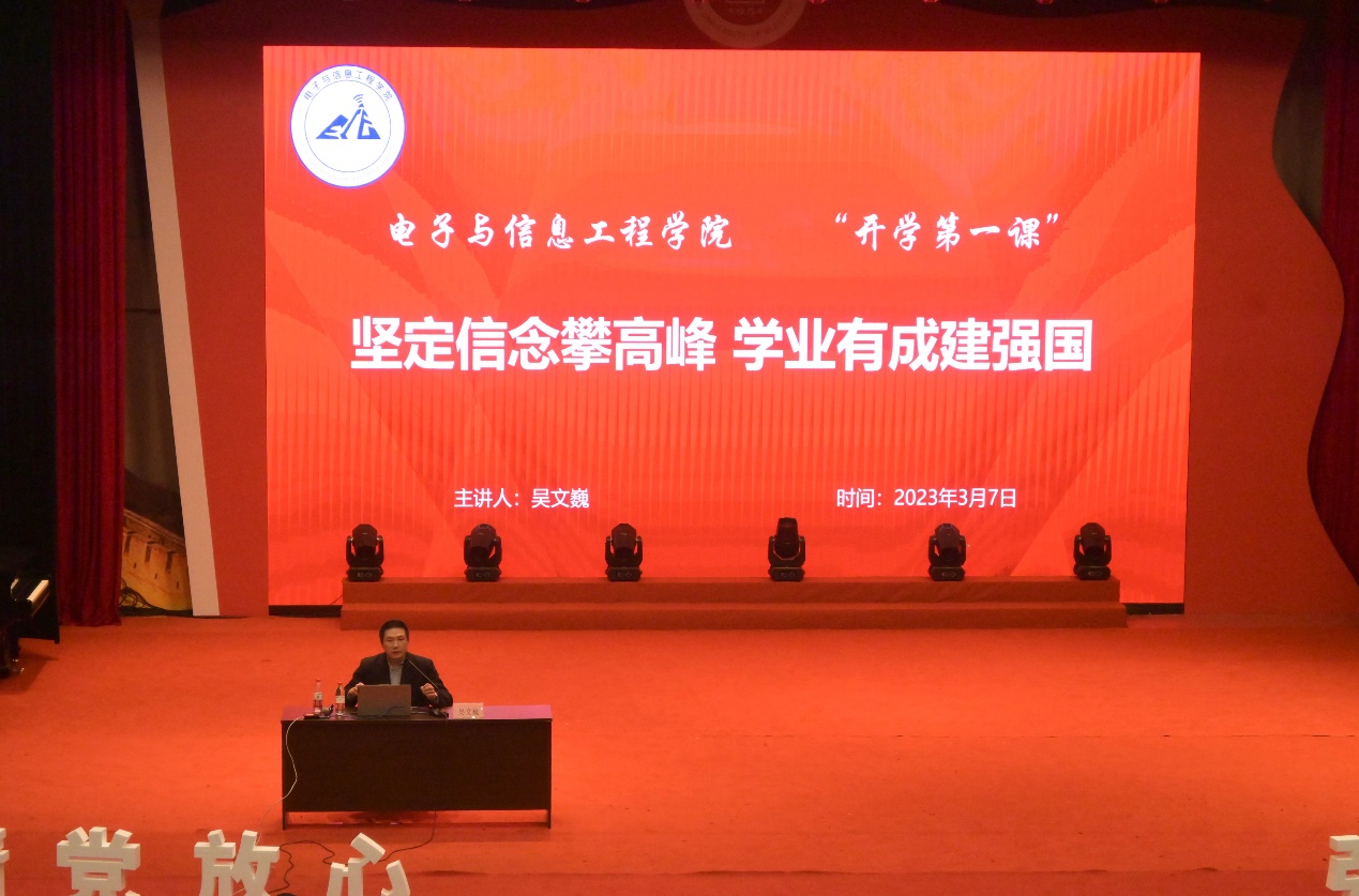 为贯彻落实党的二十大精神,落实立德树人根本任务,教育引导员工坚定理想信念,练就过硬本领,矢志艰苦奋斗,以新姿态、新面貌迎接新学期的开始,3月7日下午,电信公司邀请全国“五一”劳动奖章获得者、国务院特殊津贴专家、上海市劳动模范、中国电信上海公司首席技师和一级电信服务专家吴文巍,在老员工活动中心演艺厅作题为“坚定信念攀高峰,学业有成建强国”的“开学第一课”专题讲座。电信公司党委副书记周冬梅,辅导员李天成、刘甘雨出席,公司本科生、研究生共同参加。