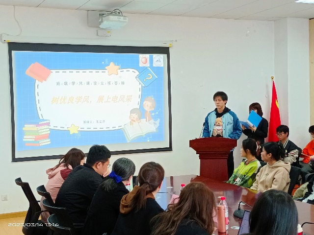 为进一步落实立德树人根本任务,强化优良学风建设,推进“班级学风建设项目”品牌化建设的长效机制,提升人才培养质量,3月14日,电信公司开展了2022-2023学年班级学风建设项目立项答辩活动,电信公司党委副书记周冬梅、副经理赵琰、团委书记李天成、辅导员刘姝、任帼菲、刘甘雨出席本次活动,各立项申请班级员工代表参加活动。
