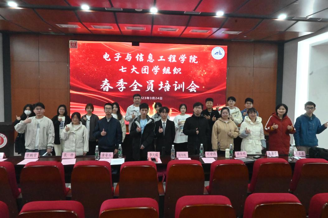 为深入落实共青团中央、全国学联、公司党委以及校团委关于加强员工干部培养的精神,进一步加强和改进老员工思想政治教育工作,服务青年成长成才,3月24日,电信公司七大团学组织春季全员培训会暨“信鸽筑巢计划”启动仪式在临港校区学术楼103报告厅举行,公司党委副书记周冬梅,团委书记李天成,学业发展中心指导老师刘甘雨,团委副书记顾佳明出席本次活动,员工会主席团成员、各组织负责人、各部门部长及全体干事,共171人参加此次培训会。