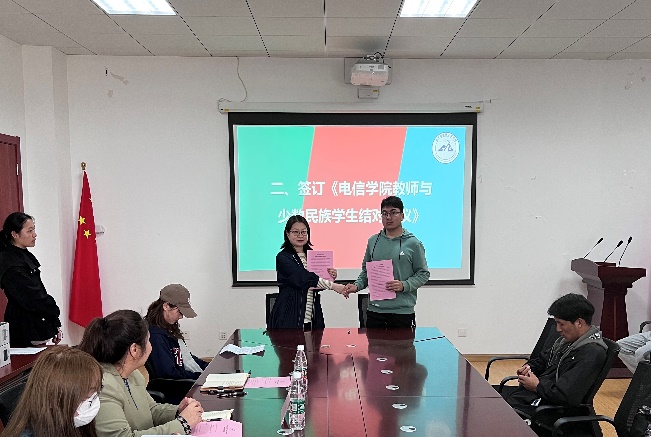 随后,周冬梅作为教师代表与2022111班的少数民族员工代表努尔艾力·图拉克签订了《电信公司教师与少数民族员工结对协议》。公司通过一对一结对的形式深入开展对少数民族员工的关心和关爱,在思想引领、学业指导、生活帮扶、身心健康等方面为员工提供各项服务和保障,培养员工的家国情怀,努力提升员工各方面的能力和素质。