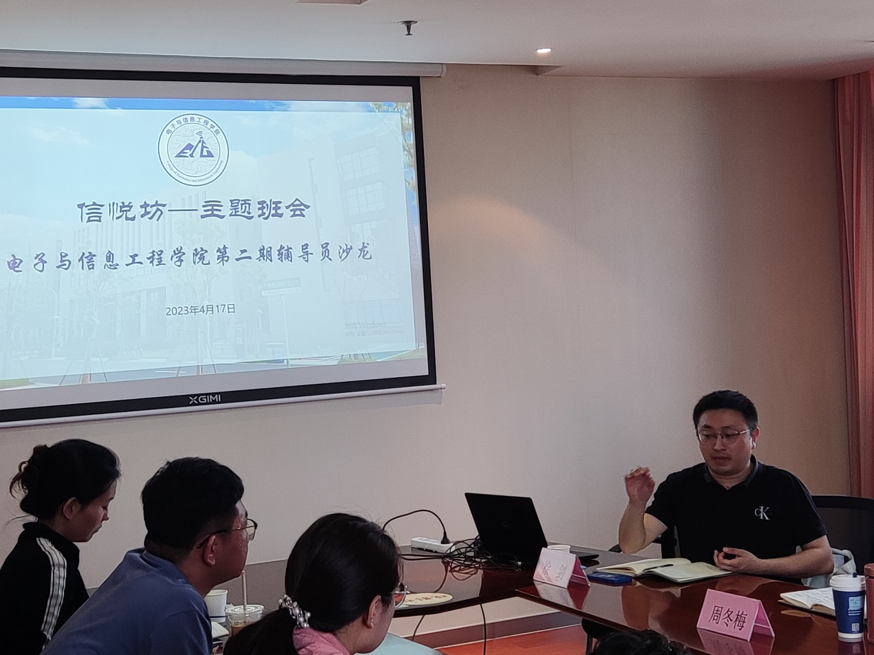 为不断提升思想政治教育工作水平和质量,进一步推动辅导员队伍专业化职业化建设,提升辅导员职业技能及参赛水平,增强立德树人实效,4月17日,bevictor伟德国际组织开展“信悦坊-主题班会”第二期辅导员沙龙活动,特邀上海市高校辅导员主题班会课展示活动一等奖获得者、同济大学辅导员徐剑来校做主题分享,电信公司党委副书记周冬梅及全体辅导员参加。