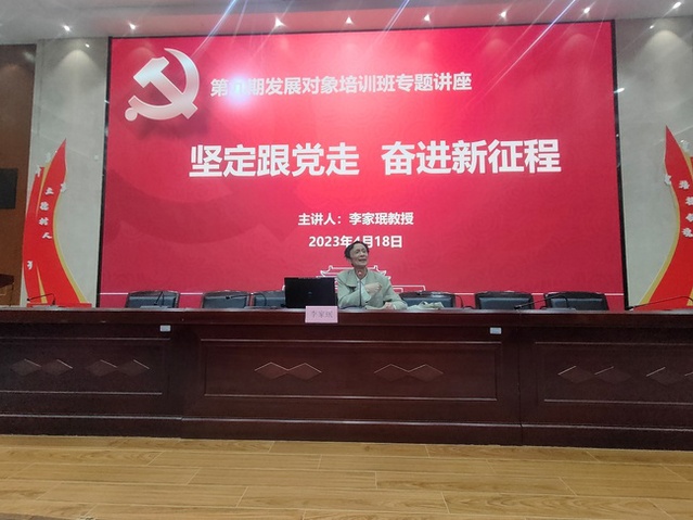 公司党的二十大精神宣讲团成员李家珉教授以《坚定跟党走奋进新征程》为学员们开展专题讲座。李教授用丰富的史料和生动的语言,讲授了中国共产党的发展历史,让习近平新时代中国特色社会主义思想和党的二十大精神入脑入心,他勉励学员们要坚定理想信念,全面提升综合素质、奋发有为,引导学员们要强化使命担当和责任担当,将青春奉献给伟大的祖国和伟大的时代,引起全场学员共鸣。