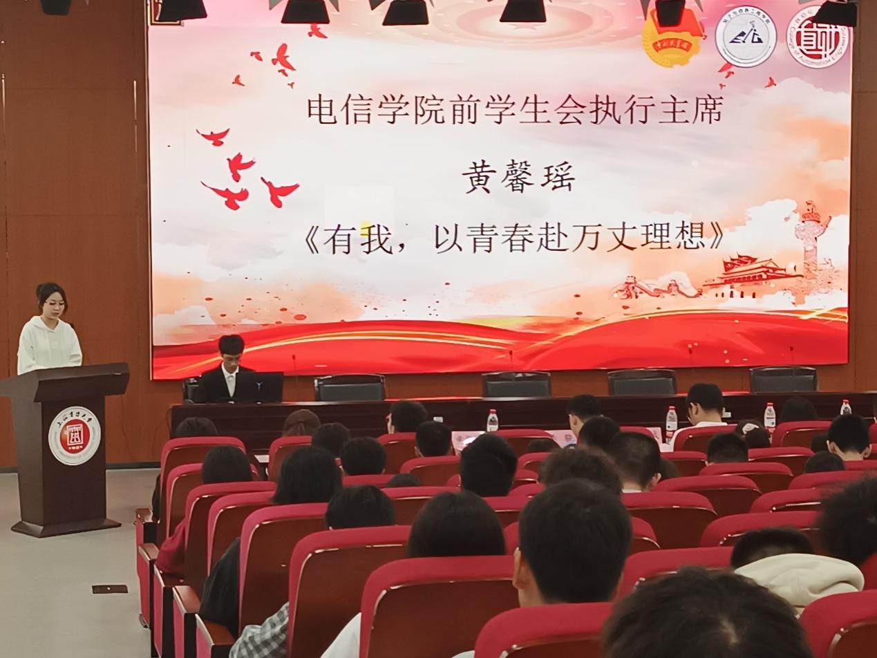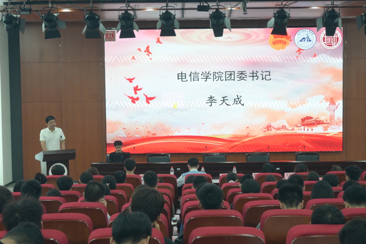 10月18日,电信公司和自动化公司在临港校区学术楼103报告厅联合举办的第五期初级团校开幕式。电信公司团委书记李天成、电信公司团委挂职副书记李骁、自动化公司团委挂职副书记苏扬、电信公司前员工会执行主席黄馨瑶出席开幕式,电信公司书记班子主席团成员、团学各部门部长、部门负责人,以及电信公司和自动化公司2023级新生代表近200人参会。