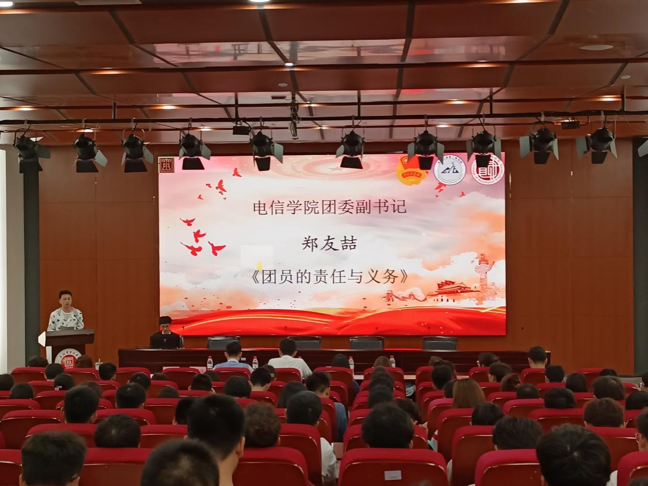 随后,电信公司团委副书记郑友喆围绕《团员的责任与义务》展开分享,他指出各位团员要明确自身的权利和义务,积极学习共青团的相关理论知识,提高思想境界,发挥团员的模范带头作用。