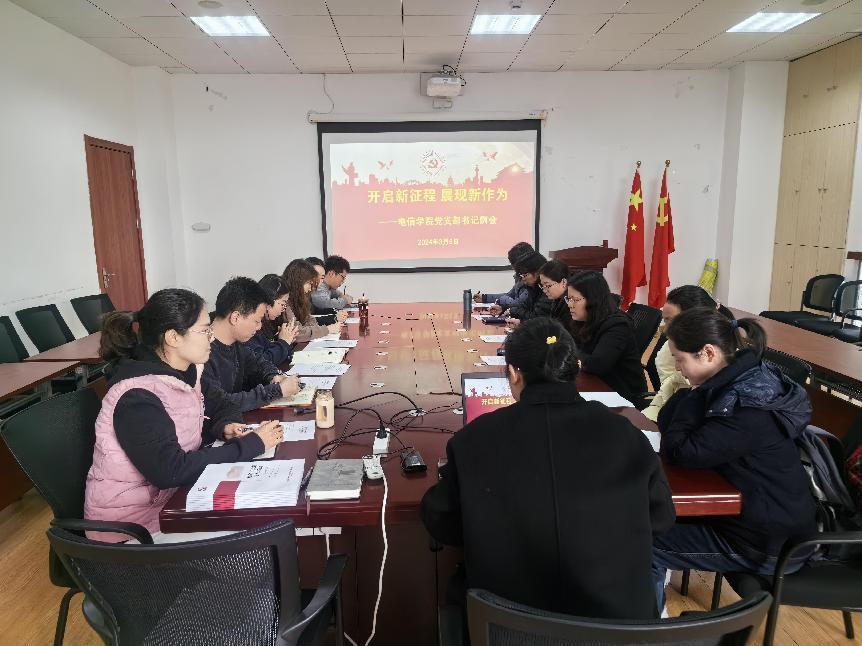 深入学习贯彻习近平新时代中国特色社会主义思想,强化党建引领不断取得新成效,确保新学期各项工作有序开展。3月6日下午,电信公司在电计楼B402会议室组织召开新学期第一次党支部书记例会,开展党支部书记业务能力培训。公司党委书记何西培、党委副书记周冬梅、专职组织员修绍梅、全体党支部书记参加会议。会议由修绍梅主持。