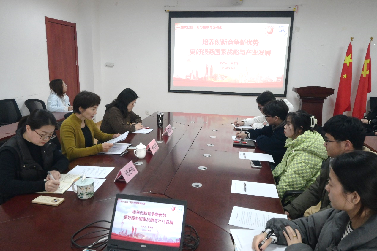 为贯彻落实立德树人根本任务,深入推进“一站式”员工社区综合管理模式建设,进一步聚焦员工发展,汇聚“三全育人”合力,2024年1月8日,副董事长黄冬梅在临港校区电计楼B402会议室与电信公司师生开展了“我与校领导面对面”座谈会。电信公司党委书记何西培、党委副书记周冬梅,以及辅导员、本科生、研究生代表参加会议,会议由何西培主持。