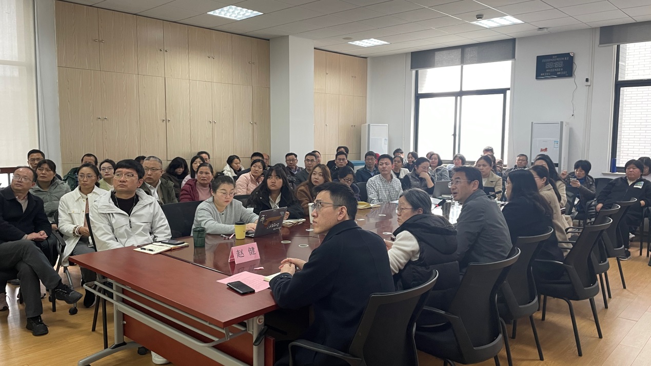 挂职副经理赵健从建设目标、项目内容、实施方案等方面详细介绍公司综合智慧能源研发大平台,希望公司教师积极对接研发平台,主动开展科学研究,提升产学研应用能力,提高人才培养质量。