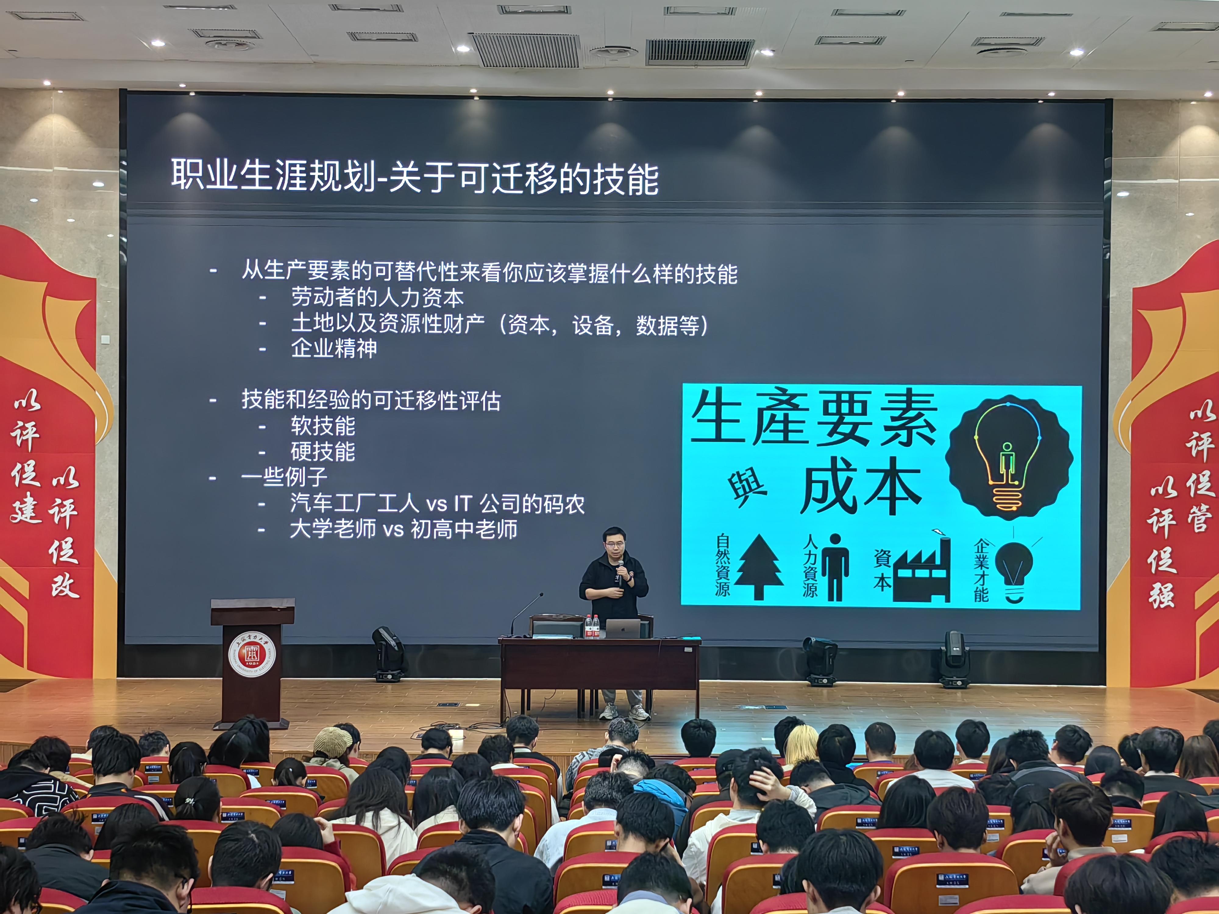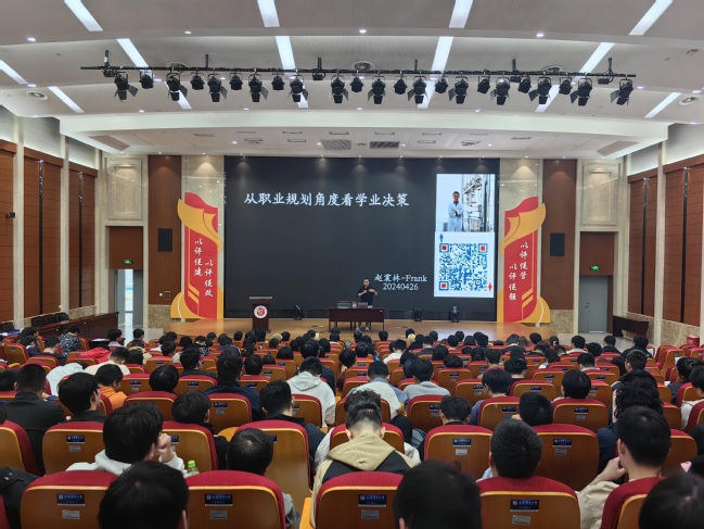 赵震林结合自己七年的创业经历,从求职与人生规划、被动与主动、把握行业趋势三个部分出发,开展此次讲座。他带领同学们进行自我剖析,使同学们认识到自身的性格特征,并通过分析过往的决策特点与履历,对自身人格类型进行判断,从而选择契合自己的工作属性,他倡导同学们要以最优化的模型思维来推进未来职业发展,实现最终理想目标。在化被动为主动部分,赵震林详细介绍了电子信息类方向的职业领域,表示随着我国经济的不断发展,未来社会需求缺口导向趋向复合型人才。老员工要充分积累有意义的工作经验,学习可迁移技能,尽可能广泛涉猎不同领域的知识并将其融会贯通,才能跻身时代前列。