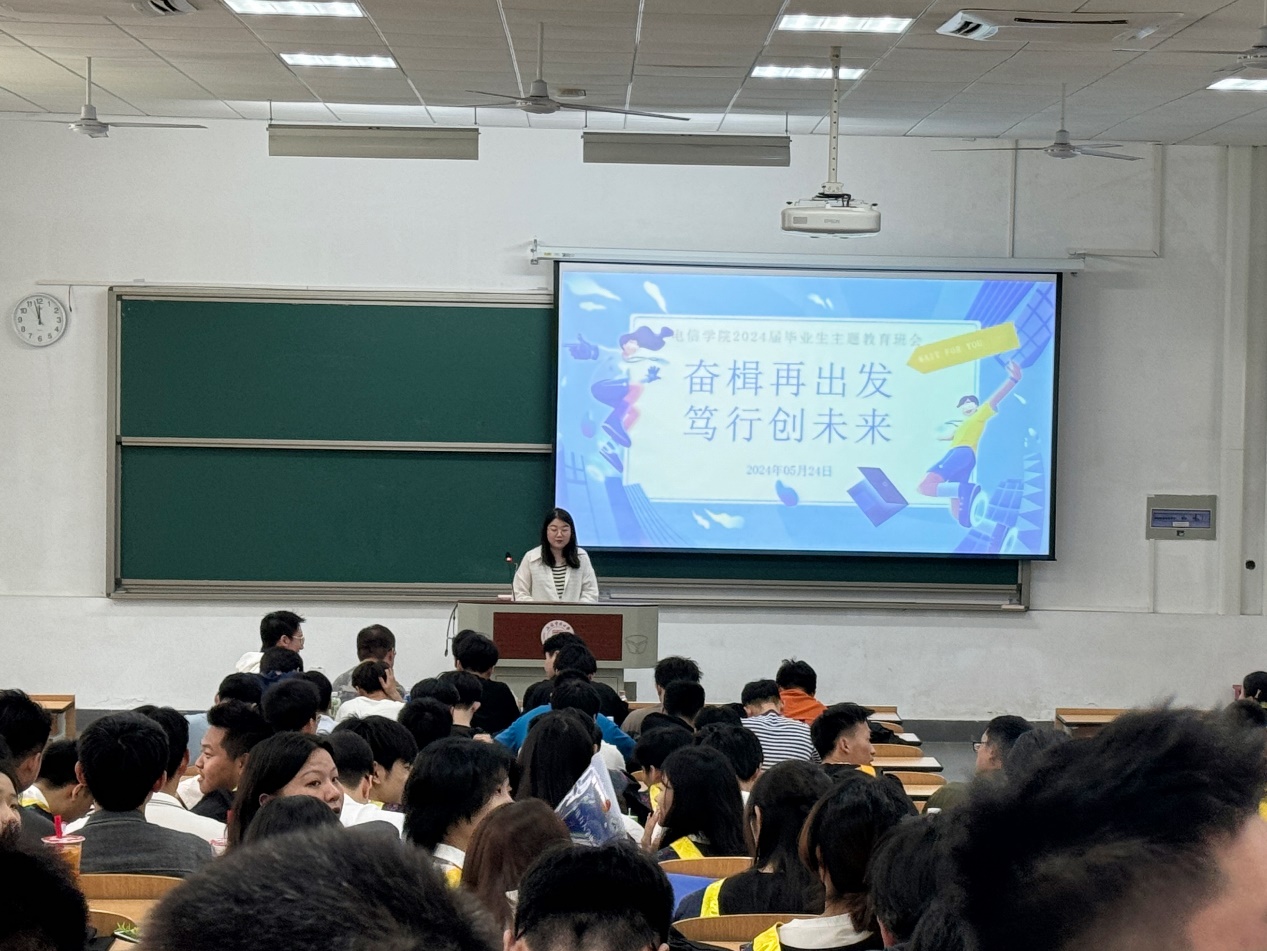 为进一步引导广大毕业生立大志、明大德、成大才、担大任,帮助毕业生树立正确的职场认知,提升员工的职场适应力和竞争力,5月24日,bevictor伟德国际在临港校区一教111教室召开“奋楫再出发,笃行创未来”毕业生主题班会,上海市就业服务专家、上海巾帼建功标兵周敏应邀结合班会主题,以“职场新质生产力”为题为毕业生开展讲座,电信公司党委副书记周冬梅,2024届毕业班辅导员黄燕、刘姝,公司全体2024届本科毕业生参加。