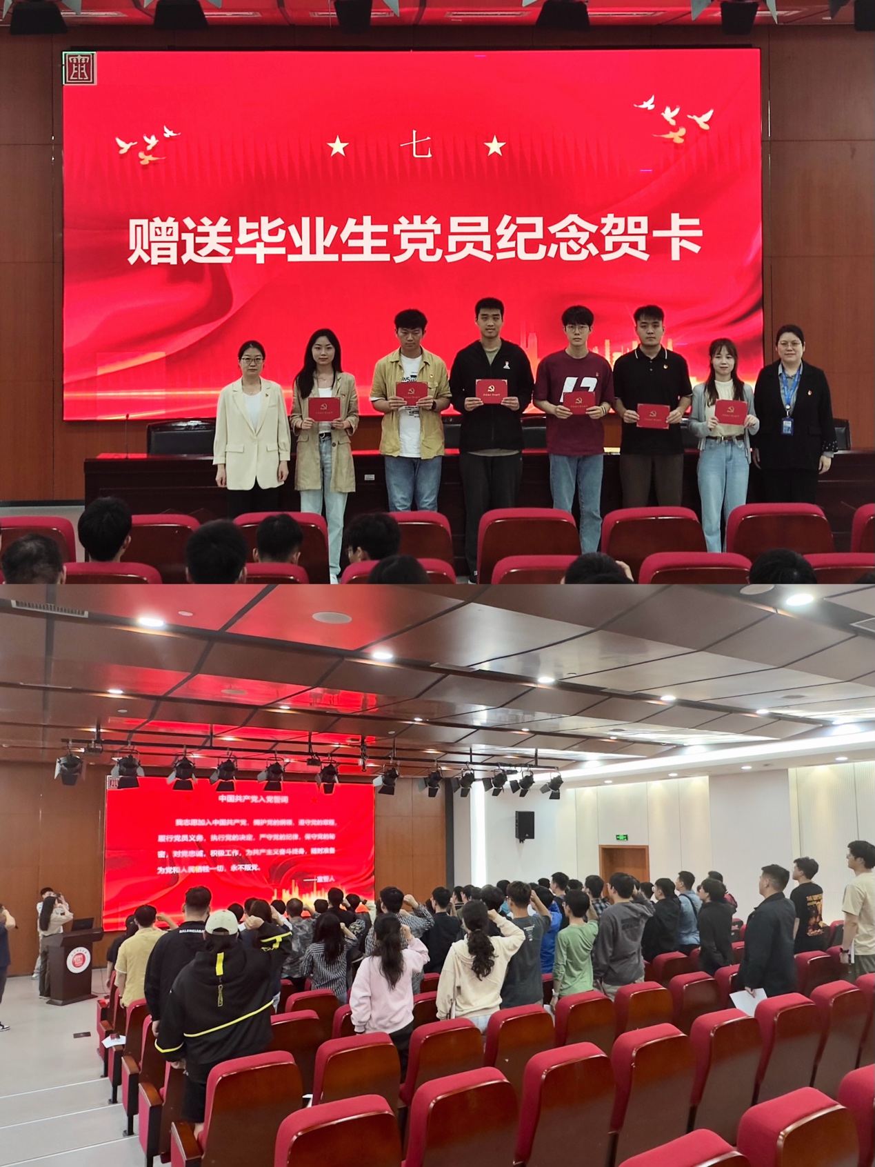 回顾来时路,走好脚下路。会议在庄严的国歌声中拉开序幕,全体师生起立,奏唱国歌。随后全体毕业生党员观看了2024届毕业生党员纪念视频,回顾了四年大学期间的学习、工作、实践和生活。
