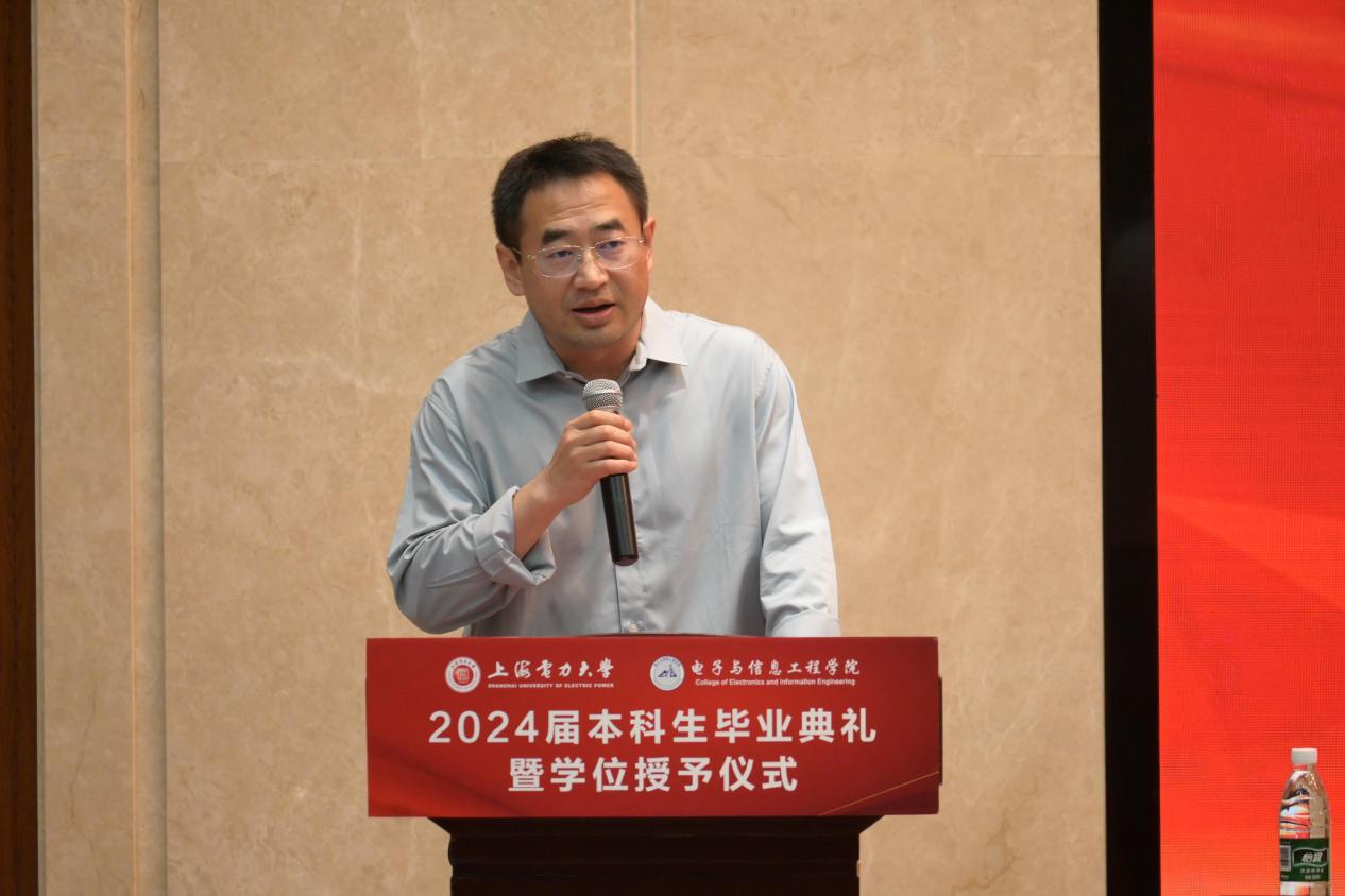 经理崔昊杨代表公司向全体毕业生表示祝贺,向关心公司发展、支持公司工作的家长们表示衷心感谢,向辛勤耕耘、默默奉献的老师们致以崇高敬意,他对毕业生过去四年的成长生涯进行了回顾与肯定,对同学们在学术、实践、创新等方面的卓越表现给予了高度评价,希望毕业生们在新的人生道路上眼中有光,厚植家国情怀;脚下有路,不畏艰难险阻;心中有爱,常怀敬畏之心,带着电信人的初心,驶向各自人生的理想国。