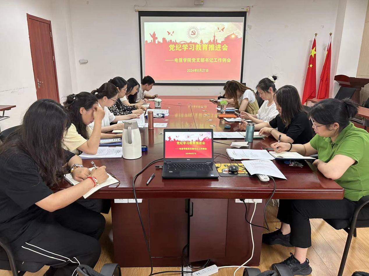 6月27日上午,电信公司召开党纪学习教育推进会暨党支部书记例会,部署党纪学习教育下阶段重点工作,公司党委书记何西培、党委副书记周冬梅、专职组织员修绍梅、全体党支部书记参加,会议由修绍梅主持。