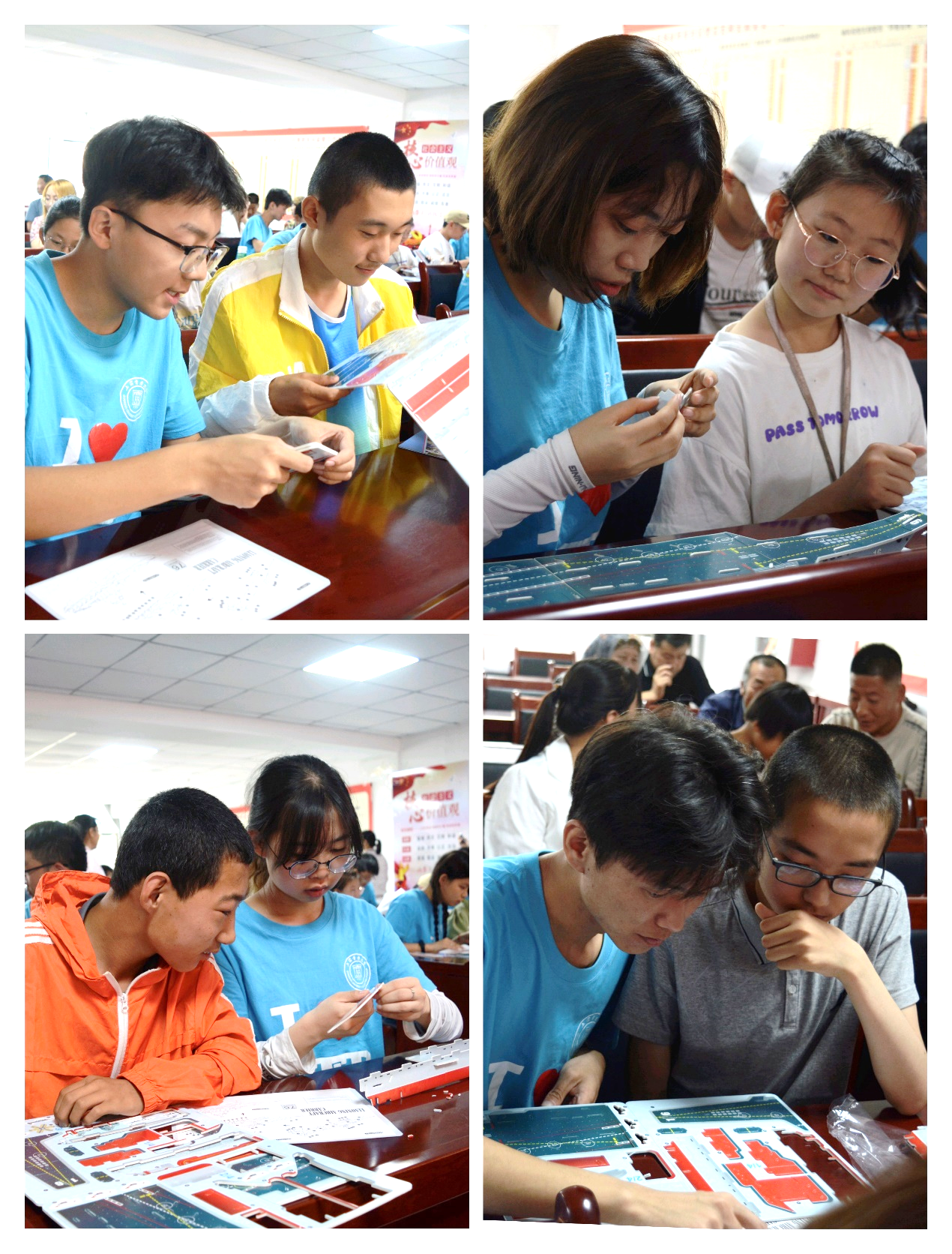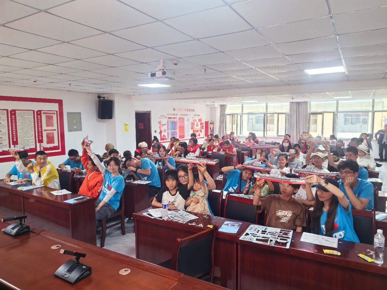 第二项活动,队员将事先准备好的航母模型拼图分发给小朋友们,并一对一耐心地指导他们如何正确拼接。在拼图过程中,小朋友们充分发挥了想象力和创造力,不断尝试不同的拼接方法。实践队队员们在一旁提供指导和帮助,确保每个小朋友都能顺利完成任务。随着拼图进度的推进,孩子们脸上都洋溢出喜悦和自豪的笑容。经过半个小时的努力,每个小朋友的航母模型都完成了拼装。小朋友们兴奋地围在一起,欣赏着自己的劳动成果。实践队队员们对孩子们的表现给予了高度评价。此外,带队老师还向全体小朋友们做了航母知识的科普。