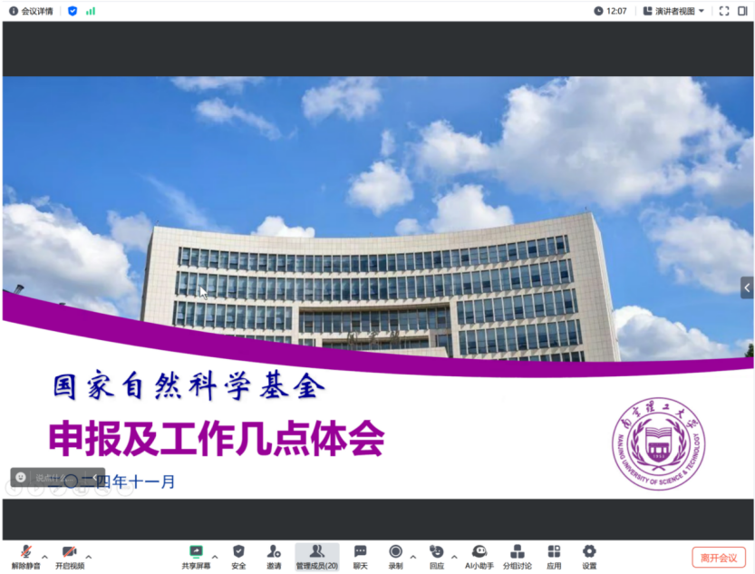 12月11日,bevictor伟德国际举办了一场线上讲座,特邀南京理工大学的柏连发教授担任主讲嘉宾。讲座主题为“国家自然科学基金申报及工作体会”,历时3小时,吸引了公司内约30名教师及研究生积极参与。